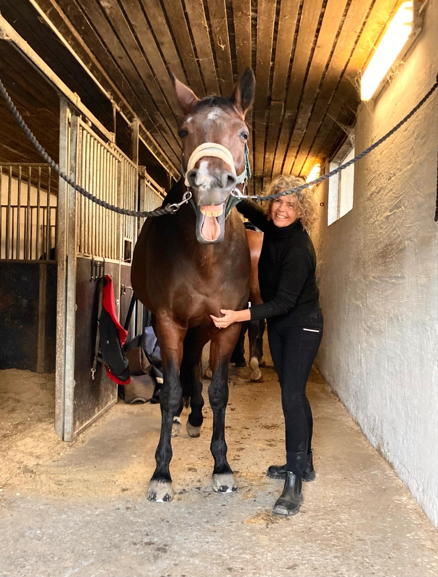 Vi starter i ro og nærvær. Jeg hilser på både dig og din hest, og vi taler kort om det, du har udfyldt i spørgeskemaet, samt dine ønsker for behandlingen.
